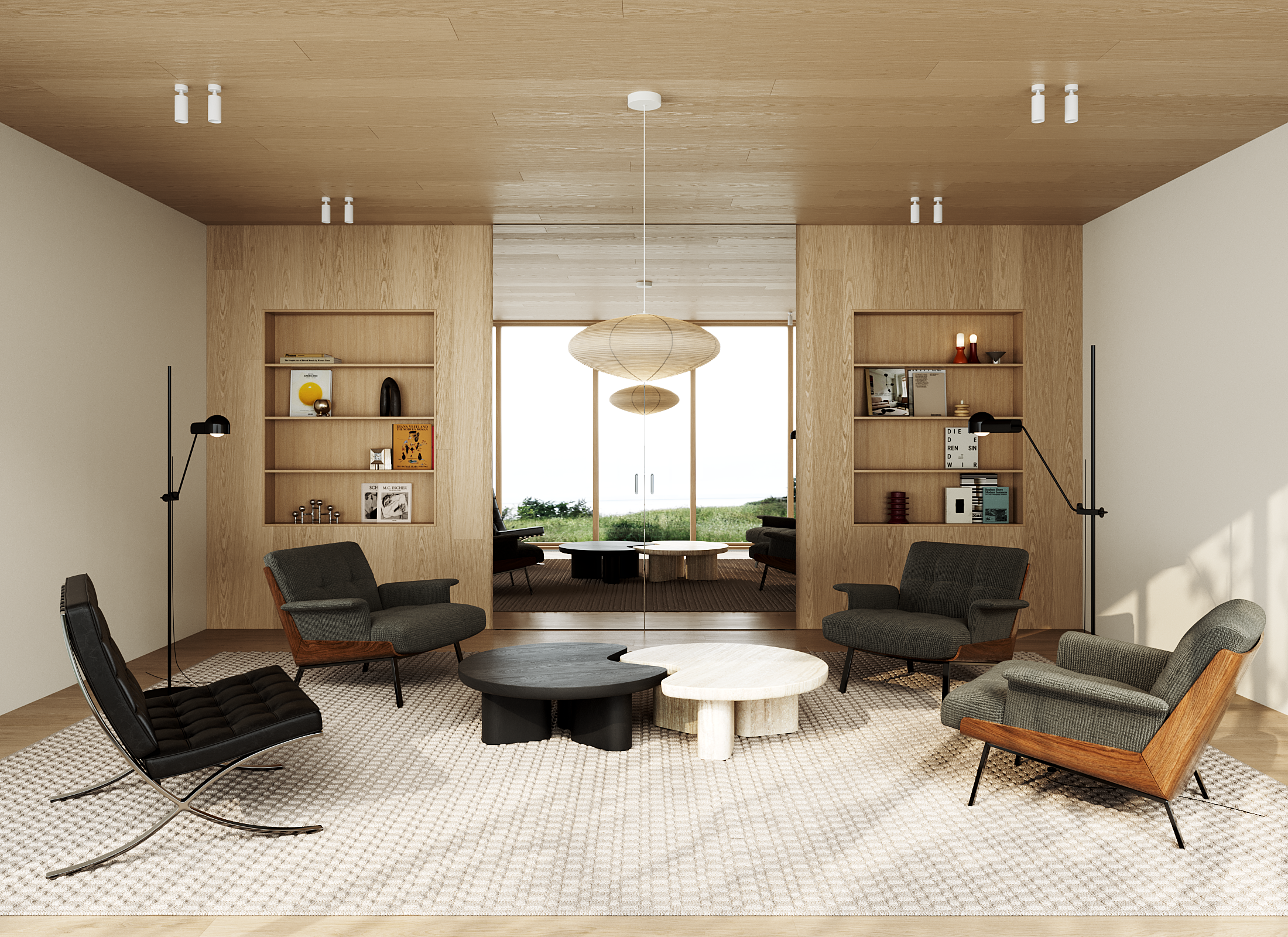 Все три элемента формулы можно сделать в одной облицовке: шпон, кортекс или окрашивание по RAL и NCS.