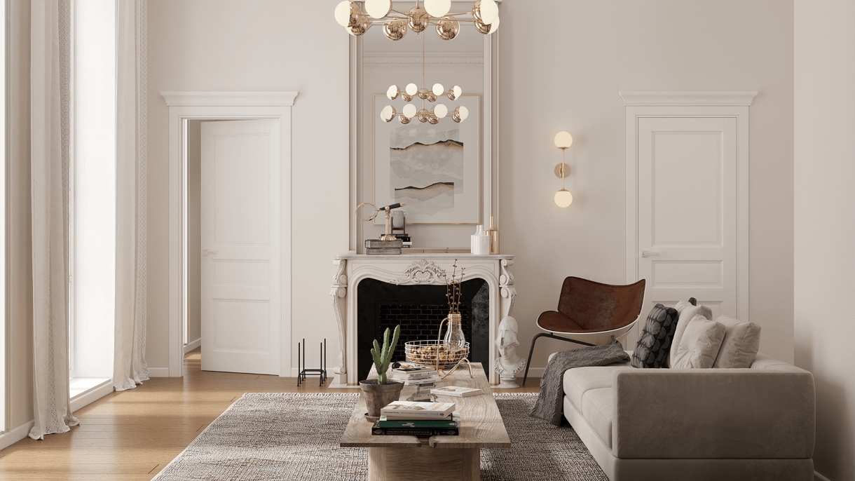Вечная классика, в новом авторском исполнении, вдохновленная интерьерами из любимых фильмов ХХ века. Располагает к ажурному обрамлению фигурными наличниками и карнизом.