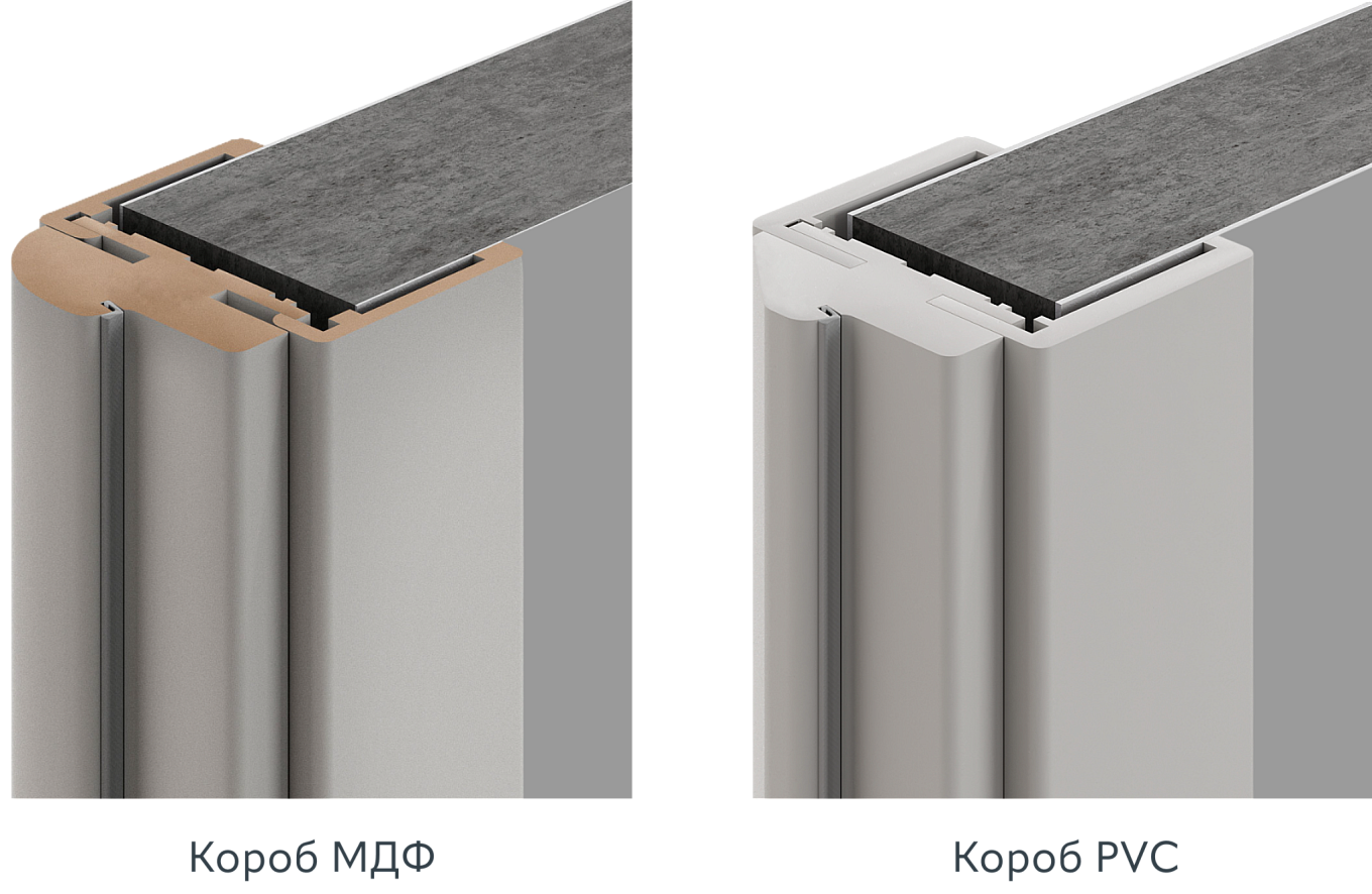 PVC — это твердый полимер. Короб из PVC помогает нивелировать кривизну проема и сохраняет свои качества на протяжении всего срока эксплуатации. Изделия абсолютно не реагируют на влагу и температурные изменения.