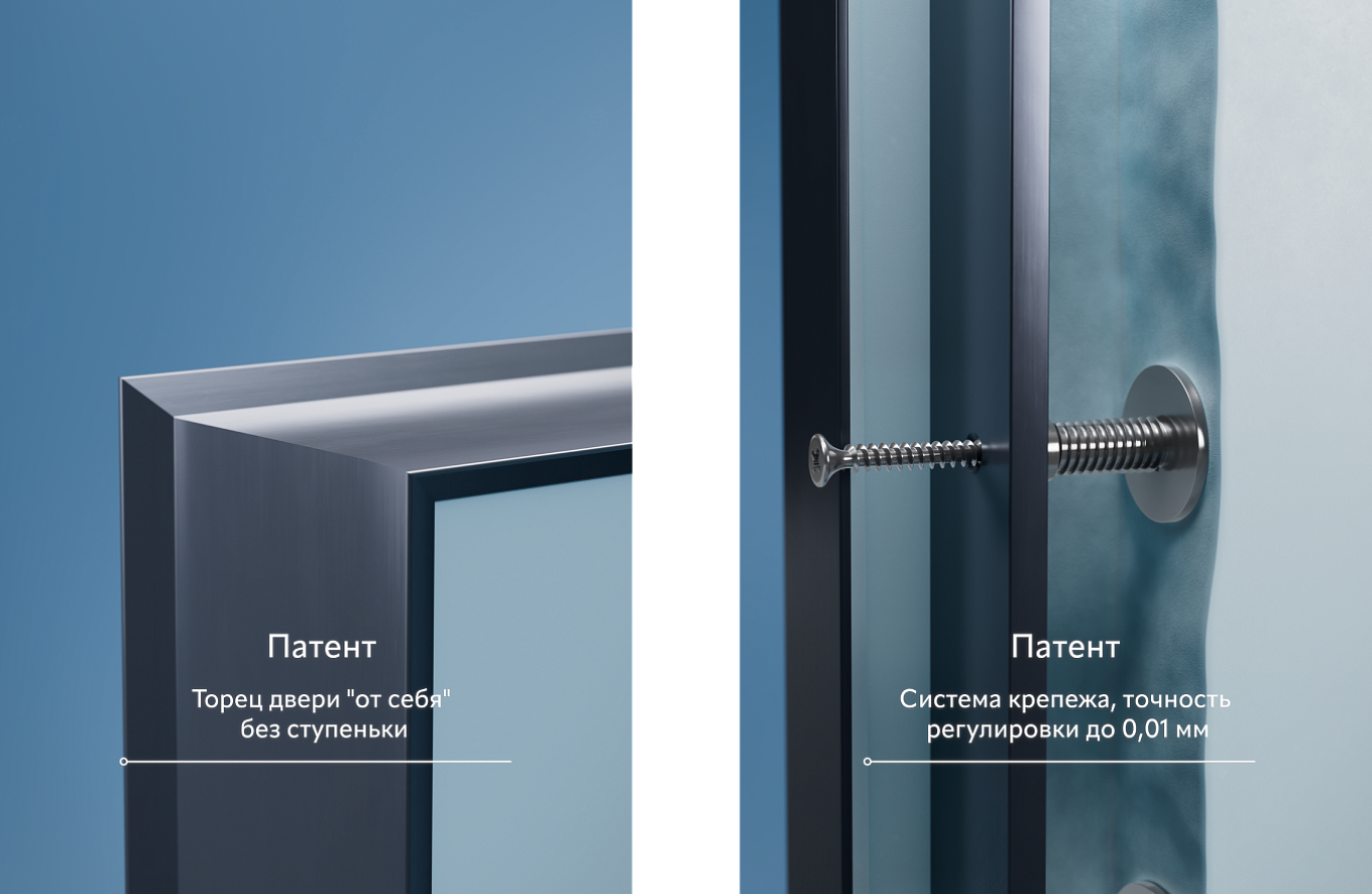 1. Патент на технологическое решение при котором полотно с открыванием “от себя” не имеет ступеньки. Двери с разным открыванием в интерьере будут выглядеть идентично.