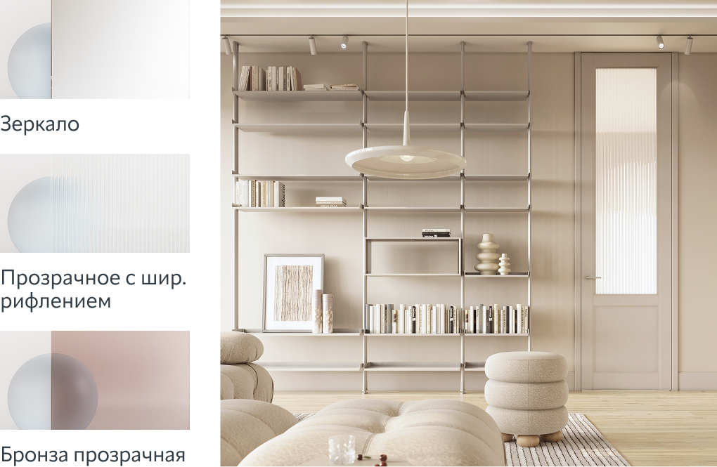В качестве опции на всех вариантах стекла на лицевой стороне может быть выполнена гравировка в виде вертикальных полос.