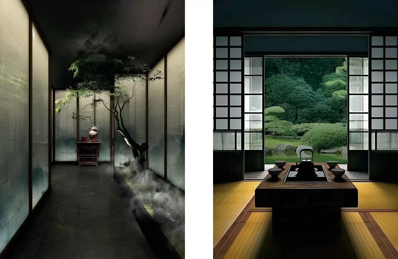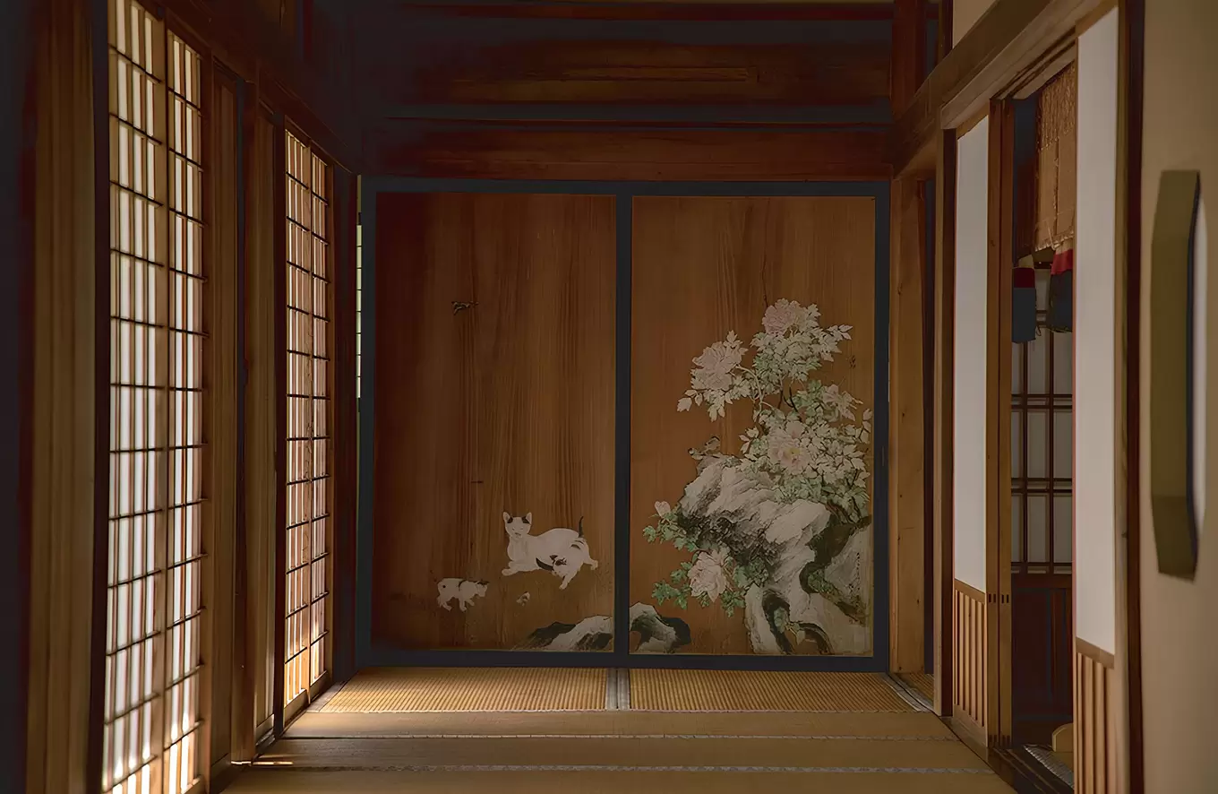 Раздвижные перегородки и двери Shōji, с их деревянными рамами и бумагой washi (традиционной рисовой бумагой), никогда не были просто границами. Это скорее фильтры света, которые мягко улавливают внешнее сияние и превращают его в деликатное, рассеянное свечение, наполняющее дом.